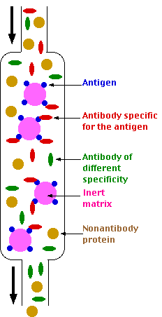 The goal of affinity chromatography is to separate all the molecules of a particular specificity from the whole gamut of molecules in a mixture such as a blood serum. For example, the antibodies in a serum sample specific for a particular antigenic determinant can be isolated by the use of affinity chromatography.
