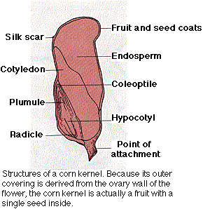 - Angiosperms whose seeds contain only a single cotyledon are monocots. Examples: corn and other grasses.