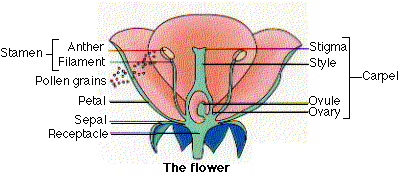 Flowers develop from flower buds. Each bud contains 4 concentric whorls of tissue. From the outer to the inner, these develop into
