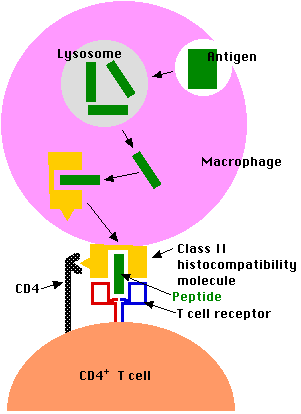 - CD4 molecules that bind the CD4 receptor (shown above as a yellow triangle) found on all class II histocompatibility molecules.