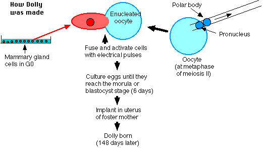 Spemann's results suggest, then, that cloning should be possible. Genetically-identical nuclei should be able to produce genetically-identical individuals. And, of course, that is what occurs in human identical twins, triplets, etc. They are "mini-clones".