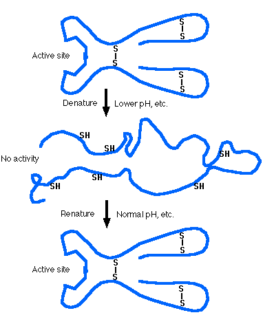 The function of a protein (except when it is serving as food) is absolutely dependent on its three-dimensional structure. A number of agents can disrupt this structure thus denaturing the protein.