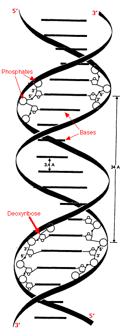 the double helix makes a complete turn with 10 nucleotide pairs, so each turn takes 34 Å.