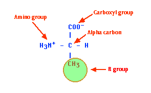 EXAMPLE: the amino acid alanine. Bonded to its alpha carbon atom are: