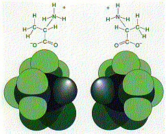 to the left, forming L-alanine(shown below on the left) or to the right, forming D-alanine (on the right).
