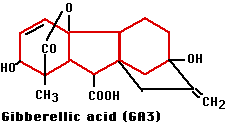 GA has a number of effects on plant growth, but the most dramatic is its effect on stem growth. When applied in low concentrations to a bush or "dwarf" bean, the stem begins to grow rapidly. the length of the internodes becomes so great that the plant becomes indistinguishable from climbing or "pole" beans. GA seems to overcome the genetic limitations in many dwarf varieties.