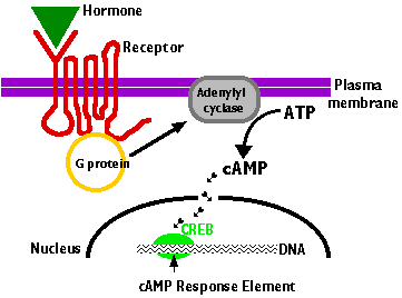 - Binding of the hormone triggers a rising level of cAMP within the cell.