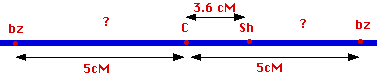 The procedure can be continued with another locus on the same chromosome.Test crossing a corn plant that is dihybrid for the C,c alleles and the alleles for bronze color (Bz, bz) produces 5% recombinants. So these two loci are 5 cM apart. However, is the bz locus on the same side of c as sh or is it on the other side?