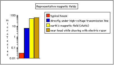 Patients and controls were grouped in 7 classes ranging from a magnetic field of less than 0.065 microteslas (µT) to greater than 0.5 µT. The tesla is a unit of magnetic field strength; the earth's magnetic field, which makes a compass needle turn, is about 50 microteslas (but does not fluctuate at 60 hertz as the much smaller fields near alternating current lines do).