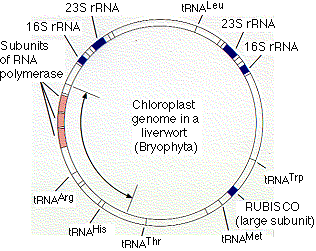 The chloroplasts of mosses and liverworts, like those of all photosynthetic eukaryotes, contain multiple copies of a small genome: circular DNA molecules encoding some - but not all - of the genes needed for - their own replication and