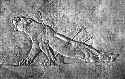 The contraction of skeletal muscle is controlled by the nervous system. The Dying Lioness (an Assyrian relief dating from about 650 B.C. and supplied through the courtesy of The Trustees of the British Museum) shows this vividly. Injury to the spinal cord has paralyzed the otherwise undamaged hind legs.