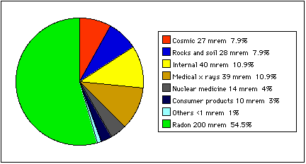 | Natural background, Boston, MA, USA (per year)(excluding radon) | 102 |