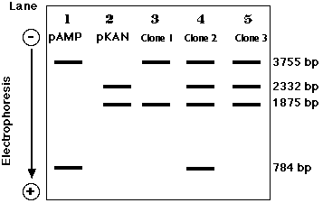 Electrophoresis of the DNA from doubly-resistant colonies (clones) tells the story.