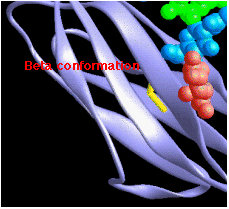 Most proteins contain one or more stretches of amino acids that take on a characteristic structure in 3-D space. The most common of these are the alpha helix and the beta conformation.